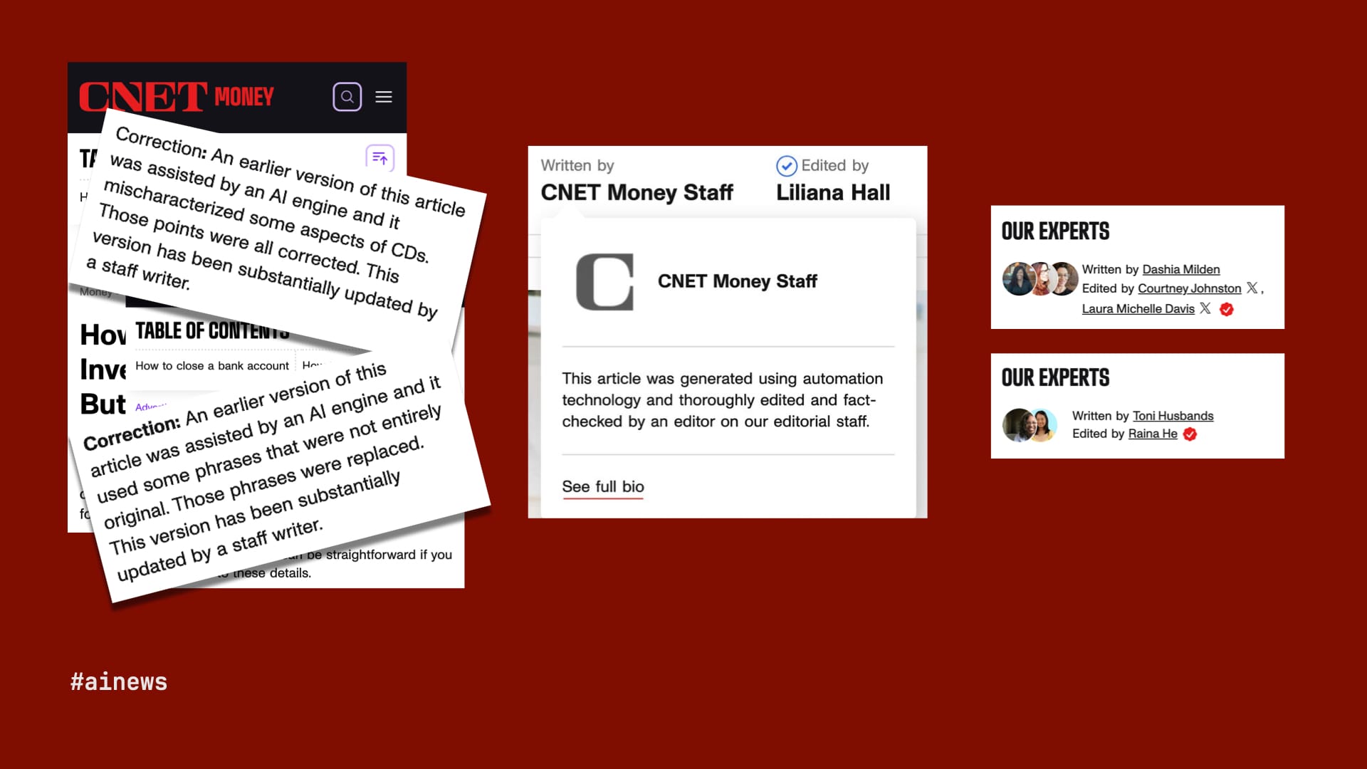 So let's start with those mistakes. Last January, CNET, the tech news site owned by Red Ventures, was revealed to be publishing financial advice—how much to invest in CDs, how to close your bank account, etc.—using what it called "automation technology," although the bylines simply said, "Written by CNET Money Staff."