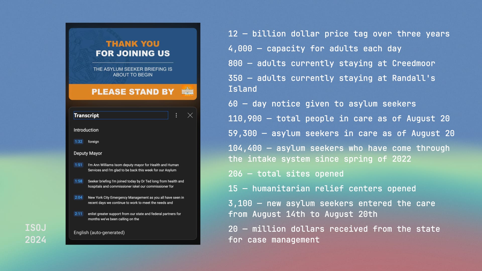 A colleague of mine at The Times covering immigration was frustrated by New York’s habit of releasing important statistics ad hoc in the middle of City Hall press conferences. So he gave the transcripts to an LLM and asked it to spit out all the statistics. It gave him a kind of Harper’s Index of each press conference.