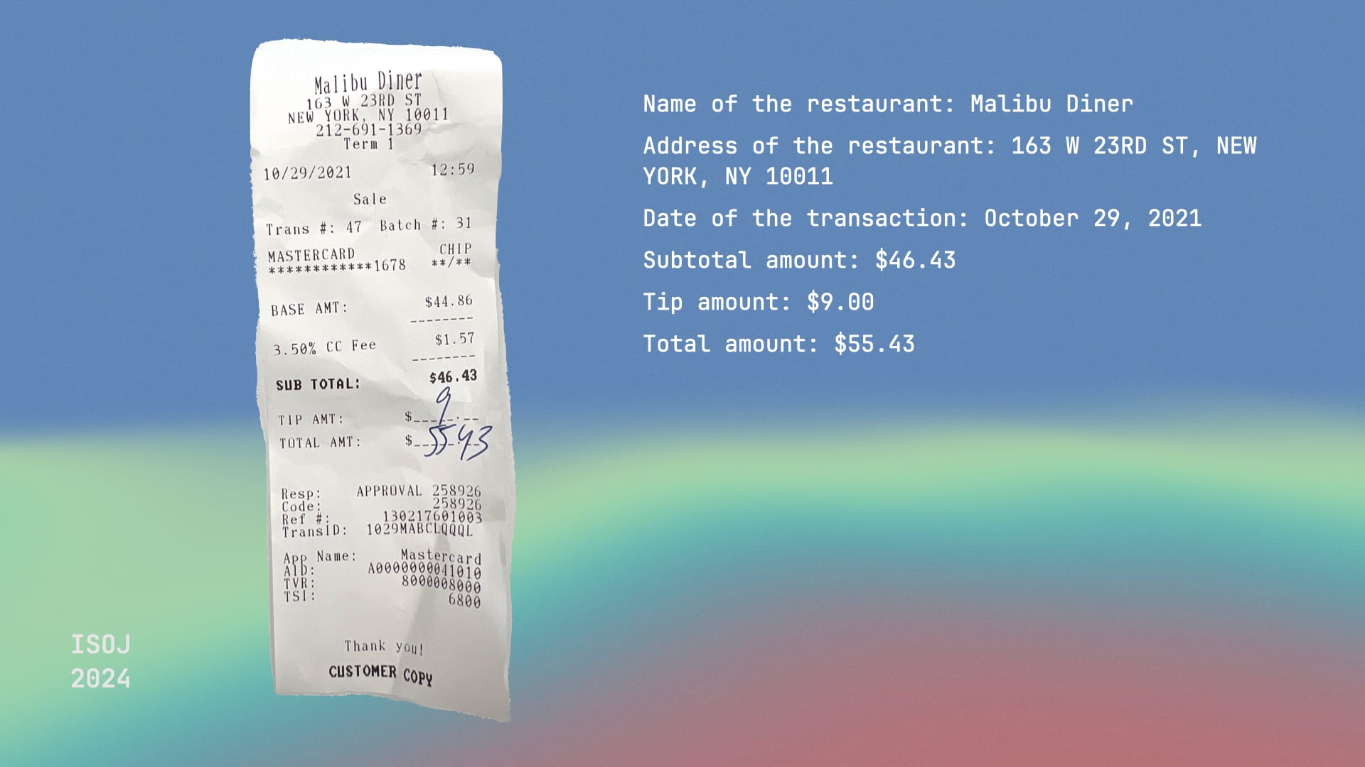 A lot of you are traveling here from out of town at your employer’s expense, which means lots of receipts like this one and a painful data-entry process when you get home. Well, next time, try feeding your receipts to your favorite multimodal LLM and asking for the data you need.